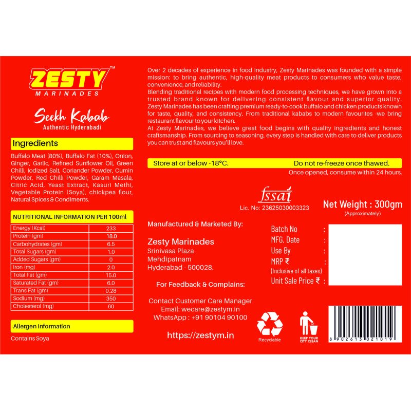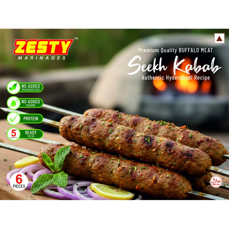 Pack of 6 - Premium Halal Beef Seekh Kabab from Zesty Marinades, made with high-quality beef and traditional spices for rich, authentic flavor. These ready-to-cook kababs are soft, juicy, and perfectly seasoned, ideal for grilling, pan-frying, or oven-cooking. Hygienically processed and frozen to lock in freshness, they deliver consistent taste for home kitchens, restaurants, and catering services. Available for bulk and retail supply across Hyderabad, Bangalore, Chennai, and Kerala. Enjoy hassle-free cooking with tender, flavorful beef kababs that bring restaurant-quality taste to every meal.